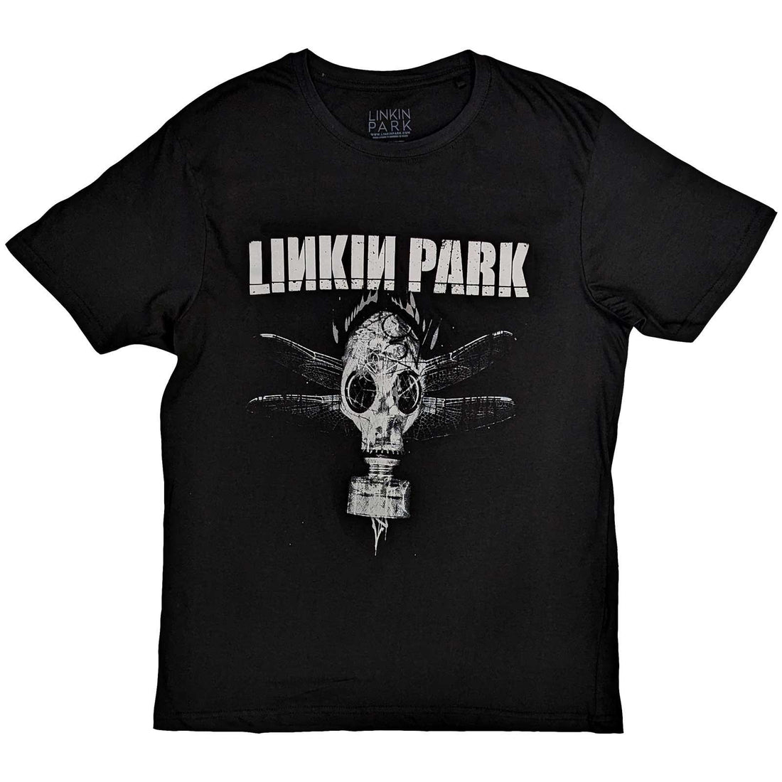 An official licensed Linkin Park Unisex T-Shirt featuring the 'Gas Mask' design motif. This high quality T-Shirt is available in a black colourway.