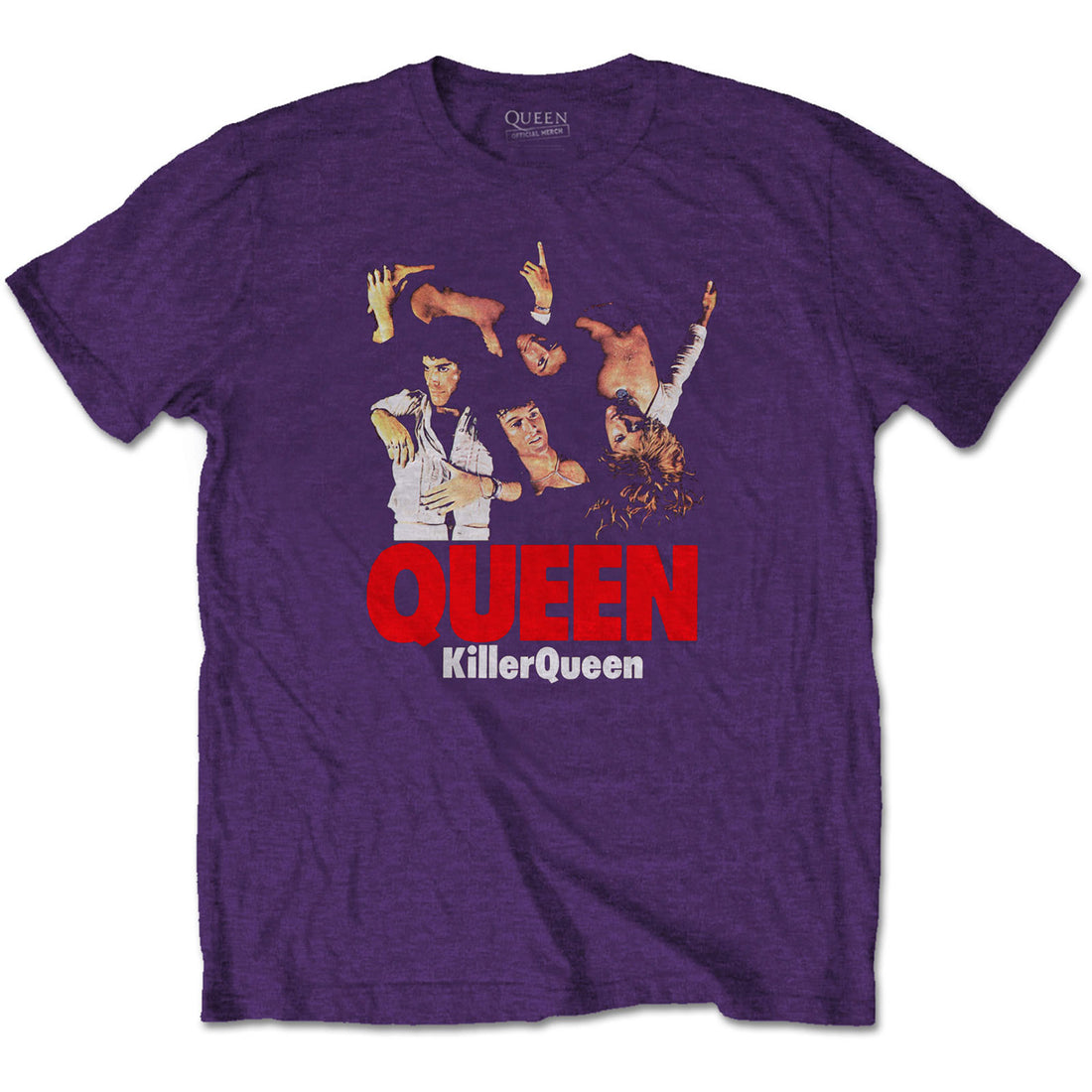 An official licensed Queen Unisex T-Shirt featuring the Killer Queen design motif. This high quality T-Shirt is available in a purple colorway