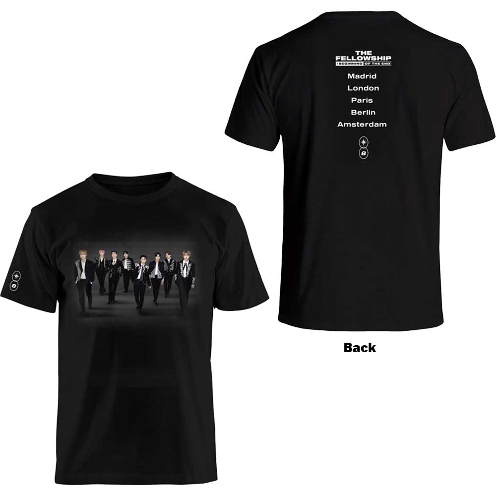An official licensed ATEEZ Unisex T-Shirt featuring the Fellowship Tour Euro Photo design motif. This high quality T-Shirt is available in a black colourway.