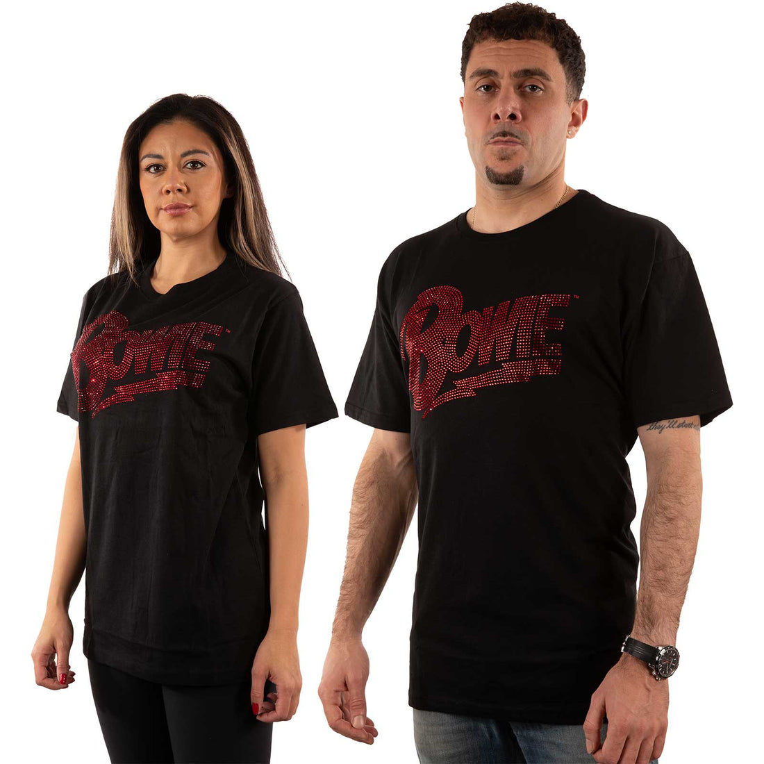 An official licensed David Bowie Ladies T-Shirt featuring the Diamond Dogs Logo design motif. This high quality T-Shirt is available in a black colorway