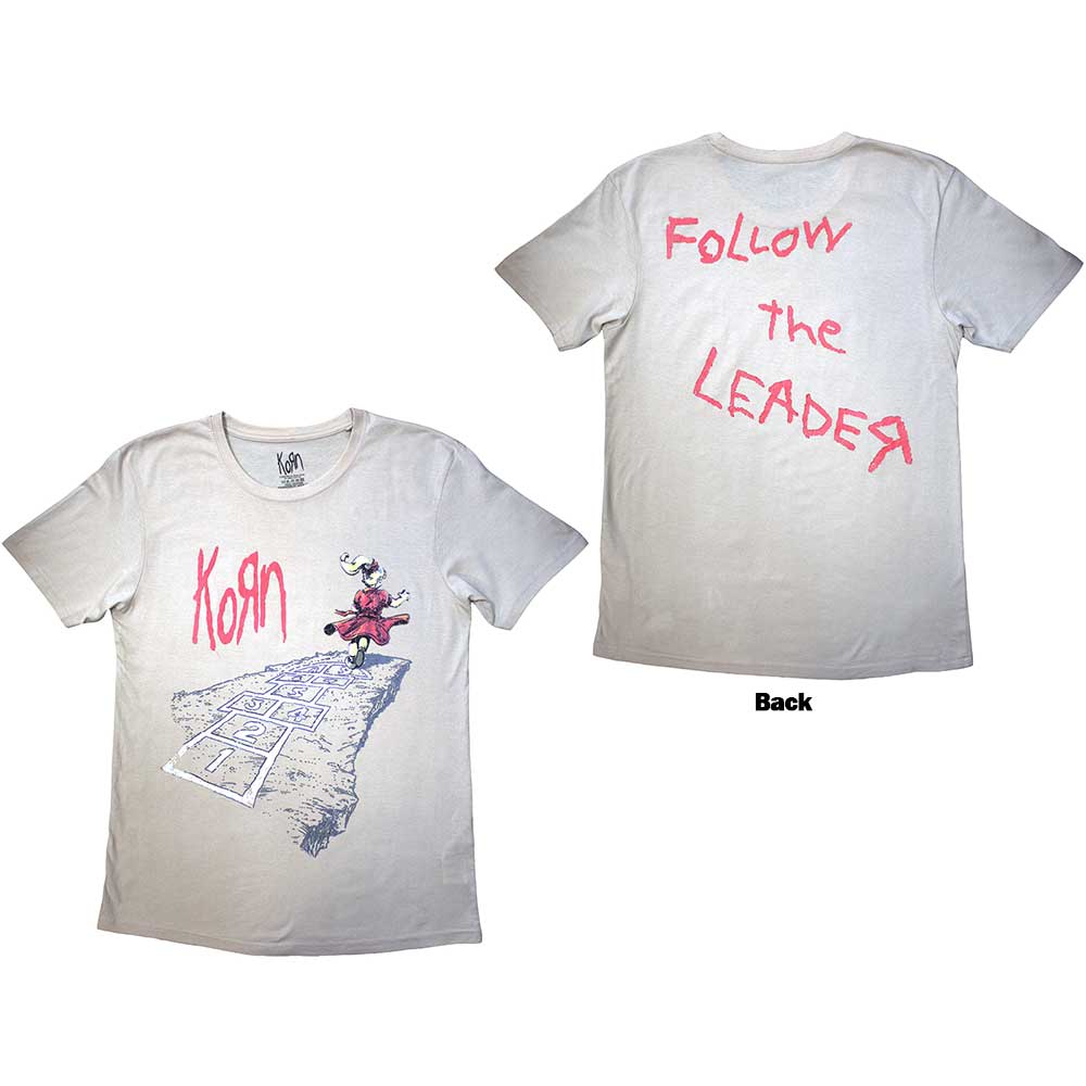 Official licensed Korn Unisex T-Shirt featuring the 'Follow The Leader Hopscotch' design motif. High quality T-Shirt available in a sand colourway.