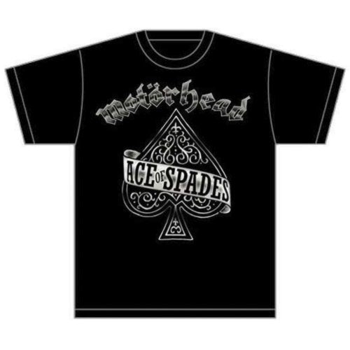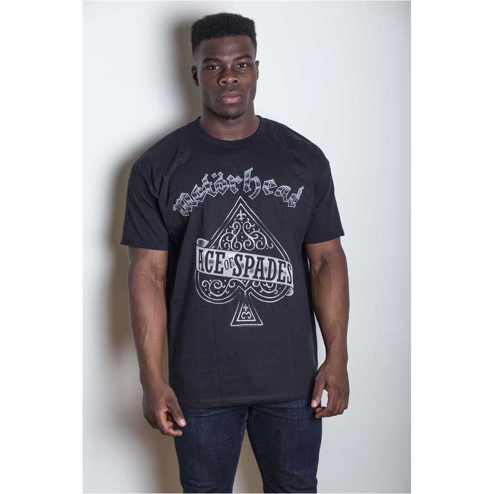 An official licensed Motorhead Unisex T-Shirt featuring the Ace of Spades design motif. This high quality T-Shirt is available in a black colourway.