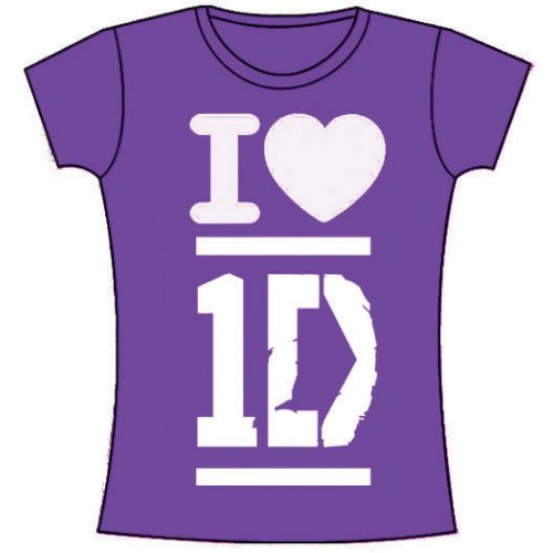 An official licensed One Direction Ladies T-Shirt featuring the I Love design motif. This high quality T-Shirt is available in a purple colorway