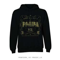 An official licensed Pantera Unisex Pullover Hoodie featuring the 101 Proof design motif. This high quality Pullover Hoodie is available in a black colorway