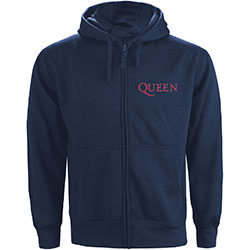 An official licensed Queen Unisex Zipped Hoodie featuring the Classic Crest design motif. This high quality Zipped Hoodie is available in a navy blue colorway