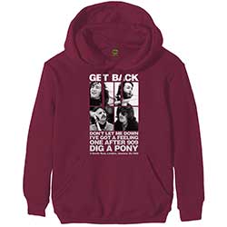 An official licensed The Beatles Unisex Pullover Hoodie featuring the 3 Savile Row design motif. This high quality Pullover Hoodie is available in a maroon red colorway