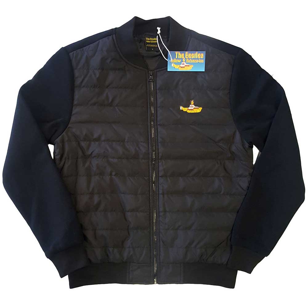 An official licensed The Beatles Unisex Quilted Jacket featuring the Yellow Submarine design motif. This high quality Quilted Jacket is available in a black colourway.
