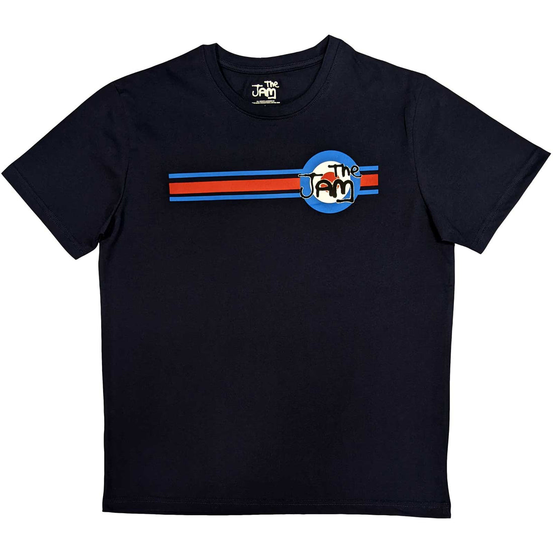 An official licensed The Jam Unisex T-Shirt featuring the Target Stripe design motif. This high quality T-Shirt is available in a navy blue colorway