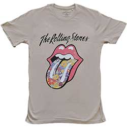 An official licensed The Rolling Stones Unisex T-Shirt featuring the Flowers Tongue design motif. This high quality T-Shirt is available in a sand colorway