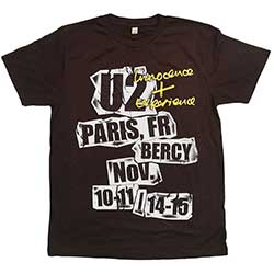 An official licensed U2 Unisex T-Shirt featuring the I+E Paris Event 2015 design motif. This high quality T-Shirt is available in a brown colorway