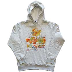 An official licensed Woodstock Unisex Pullover Hoodie featuring the Splatter design motif. This high quality Pullover Hoodie is available in a off white colorway